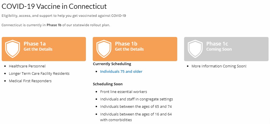 Vaccine distribution has been well under way in Connecticut since late December with roughly 160,000 doses administered to date. Distribution started with Phase 1a which included healthcare workers, first responders and long-term care facility residents. With the start of Phase 1b scheduled for January 18th, more members of the general public will become eligible to receive the vaccine.