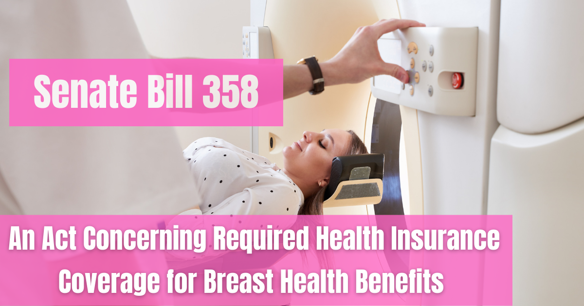 The legislation, Senate Bill 358, An Act Concerning Required Health Insurance Coverage for Breast Health Benefits expands insurance coverage requirements for mammograms, ultrasounds, magnetic resonance imaging (MRIs) for breast screenings under certain commercial health insurance policies.
