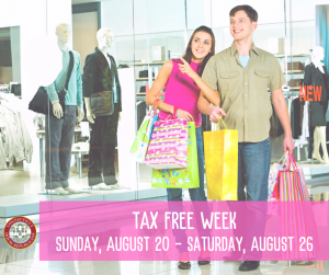 That being said, with school only a few weeks away for most students, I want to remind you to take advantage of the upcoming “Tax Free Week,” which runs from Sunday, August 20 through Saturday, August 26.