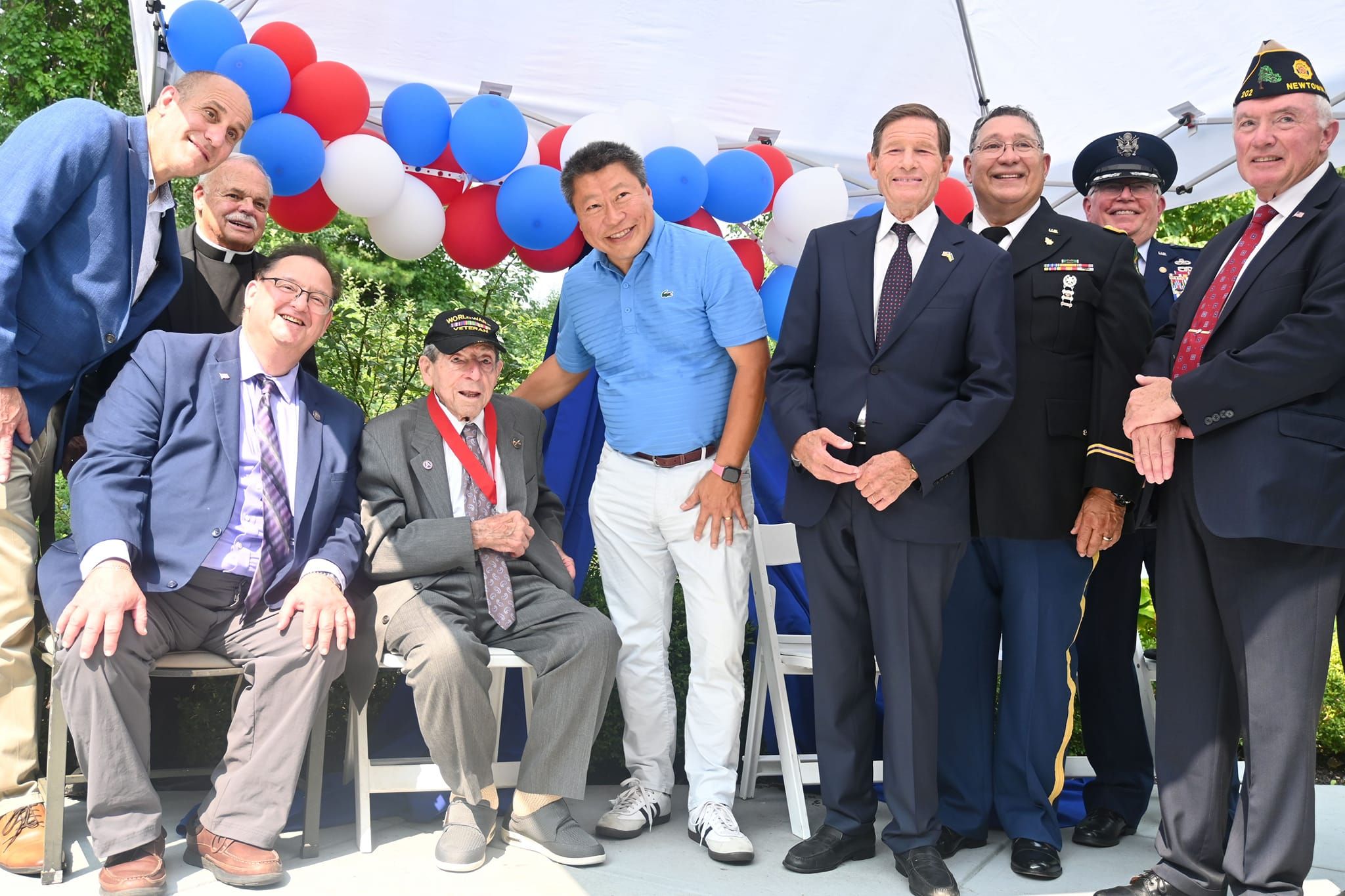 In addition to medals, memorabilia, a collection of WWII “Willie & Joe” cartoons by Bill Mau, State Senator Tony Hwang, State Representative Martin Foncello and I, Senator Richard Blumenthal, First Selectman Jeffrey Capeci, American Legion Post 202 Newtown, CT Commander, Donna Monteleone Randle, Vice Commander Philip Cruz and others enjoyed Maplewood’s beautiful outdoor patio, warm hospitality, and catering.