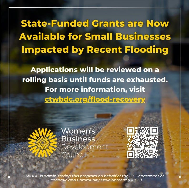 Grants of up to $25,000 are available for small businesses and nonprofit organizations in Fairfield, Litchfield, and New Haven Counties that experienced damage from the floods. Grants can be used to cover various expenses to help in the recovery, including those associated with cleanup efforts, replenishing lost inventory, and replacing equipment.