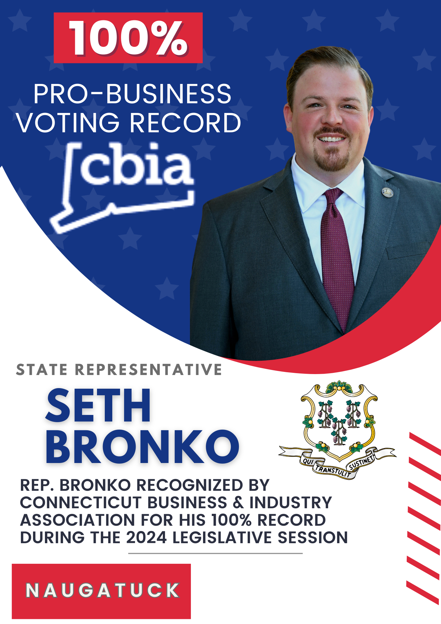 According to the association, Representative Seth Bronko, R-Naugatuck, earned a 100% score based on his votes in connection to several key bills that arose during the legislative session.