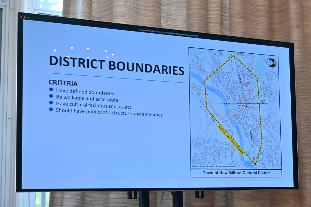 The New Milford Cultural District Commission, established last September, is led by Liba Furhman and Lou Mandler. The Commission submitted a letter of intent to your Designated Regional Service Organization and was selected after a tour of the proposed district by CT’s Office of Tourism, State Historic Preservation Office, Marketing, and others.