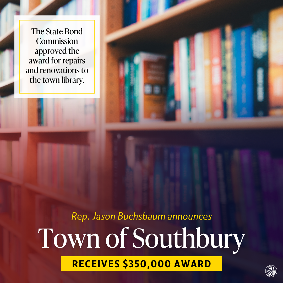 HARTFORD—State Representatives Jason Buchsbaum (R-69) and Arnie Jensen (R-131) applauded a $350,000 grant-in-aid to the Town of Southbury approved today by the State Bond Commission for repairs and renovations to the Southbury Library.
