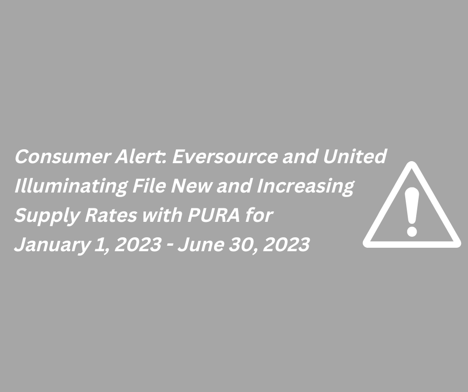 I am sharing an urgent consumer alert, regarding Connecticut’s utility companies. Eversource and United Illuminating have submitted electricity rate increase requests to the state’s Public Utility Regulatory Authority (PURA). These increases would double supply rates, effective January 1, 2023, resulting in increases of $85 and $79 respectively for households that use an average of 700kWh per month.