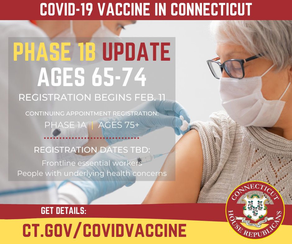 Connecticut is currently in phase 1b of its COVID-19 vaccination program. Right now under this phase, individuals over the age of 75 can receive the vaccine. Beginning Thursday, February 11, this phase will expand to include individuals between the ages of 65 and 74. Soon, the phase will become open to include individuals between the ages of 16 and 64 who have underlying health conditions, and frontline essential workers.