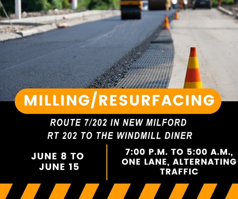 New Milford – There are two upcoming milling and resurfacing projects scheduled by the Connecticut Department of Transportation (CTDOT) in New Milford over the coming weeks.