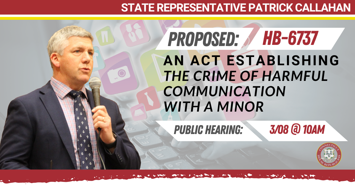 This proposal, H.B. 6737 An Act Establishing the Crime of Harmful Communication With a Minor, would ensure that the predators who are purposely targeting children with harmful intent can now be brought to justice with the creation of a new Class A misdemeanor.