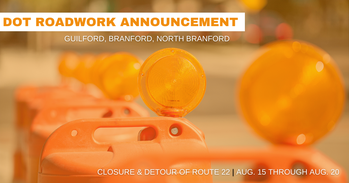 The Connecticut Department of Transportation is announcing the scheduled closure and detour of Route 22 to facilitate ongoing work activities for the construction of a modern roundabout at Route 1 and Route 22 in Guilford, Branford and North Branford.