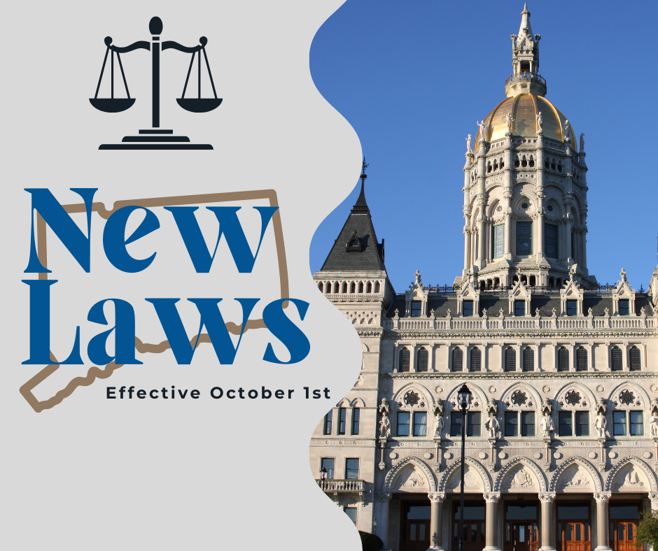 HARTFORD--A bevy of new laws, or aspects of previously enacted legislation, went into affect on October first, such as P.A. 24-39, An Act Supporting Connecticut Seniors and the Improvement of Nursing Home-Based Care. Among other measures, this law requires home health care, home health aide, homemaker companion, and hospice agencies to require employees to wear an identification badge with his or her name and photograph during each client appointment. View more of the Oct. 1 laws, which could have an impact on you, your business or our communities.