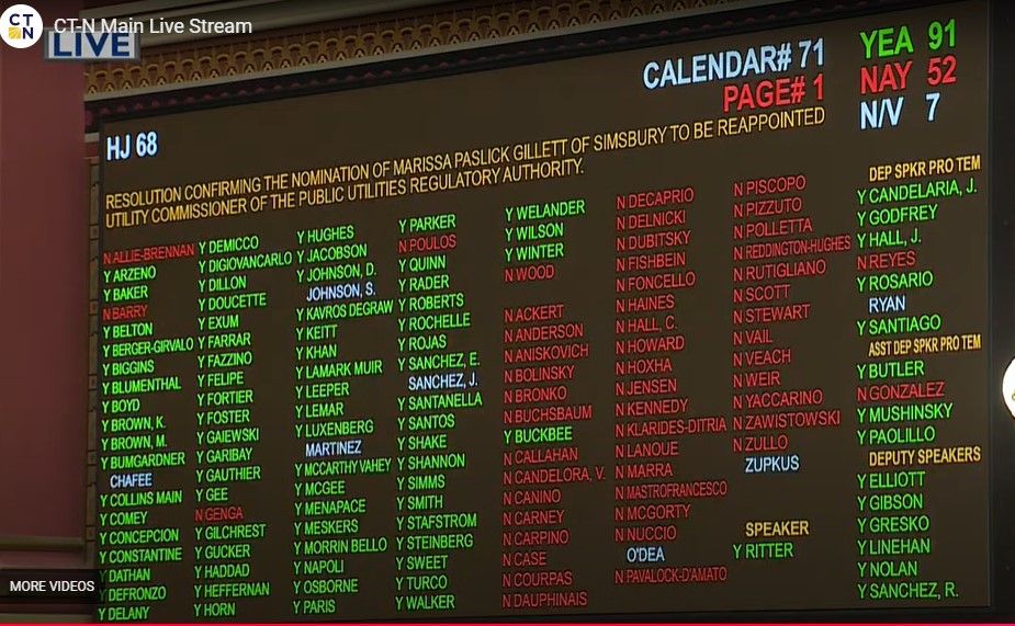 Wednesday State Rep. Christie Carpino voted against the re-appointment of Marissa Gillett as chair of the Public Utilities Regulatory Authority, the agency that regulates our utilities.