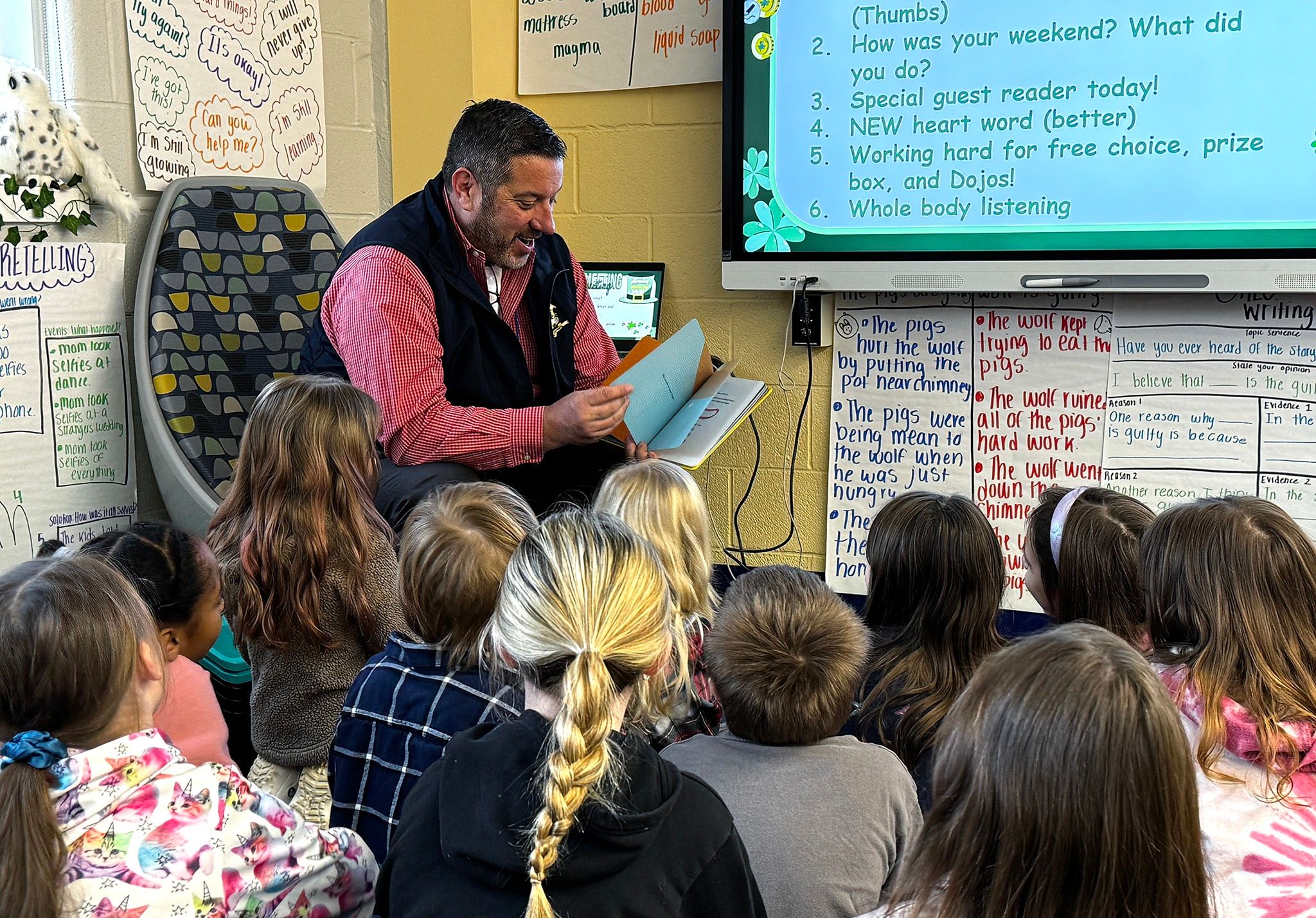 Winsted – State Rep. Jay Case (R-Winsted) was at Mary P. Hinsdale Elementary School on Monday morning to participate in Read Across America. This annual event was inspired by Dr. Seuss’ birthday and is a campaign to get children interested in reading.