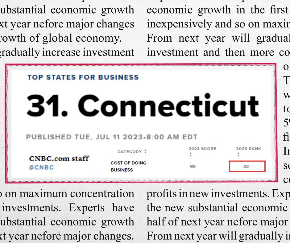 Connecticut Among Nation’s Top ‘Cost of Doing Business’ States