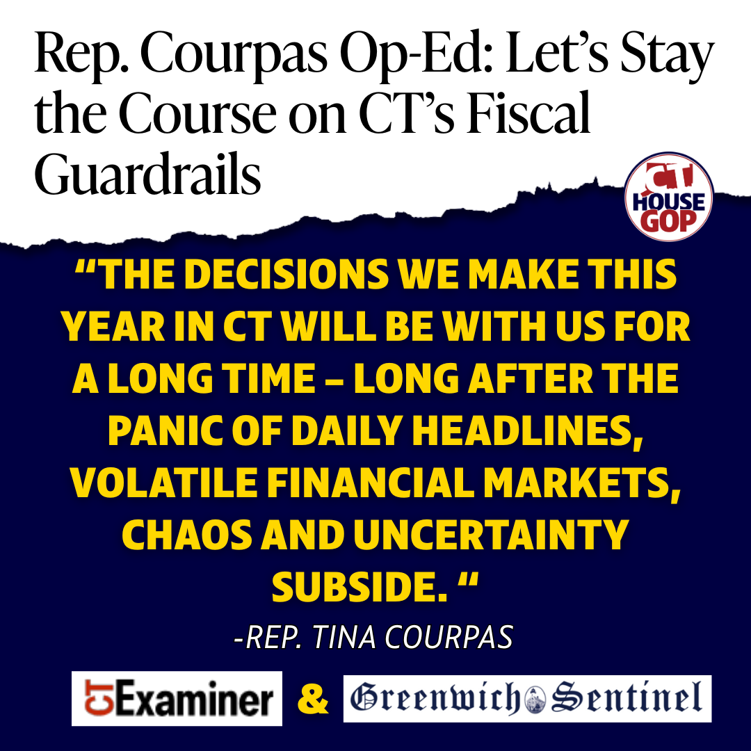 The decisions we make this year in CT will be with us for a long time – long after the panic of daily headlines, volatile financial markets, chaos and uncertainty subside. Let’s stay the course on CT’s Fiscal Guardrails. If we don’t, our taxes will go up. Let’s proceed with moderation. Let’s plan, not panic.