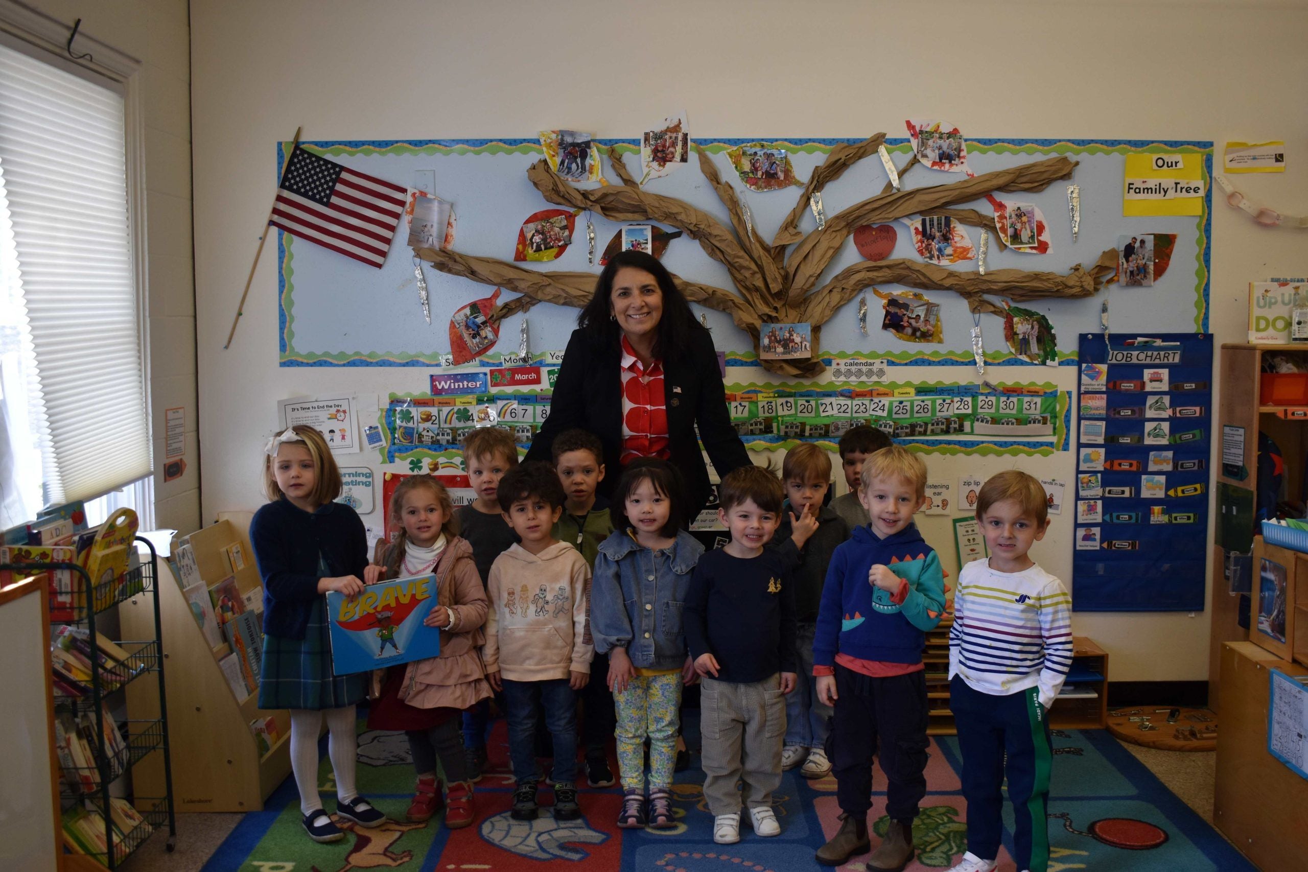 Rep. Courpas visited the school where she read to two classes at Round Hill Nursery School, which her children also attended.