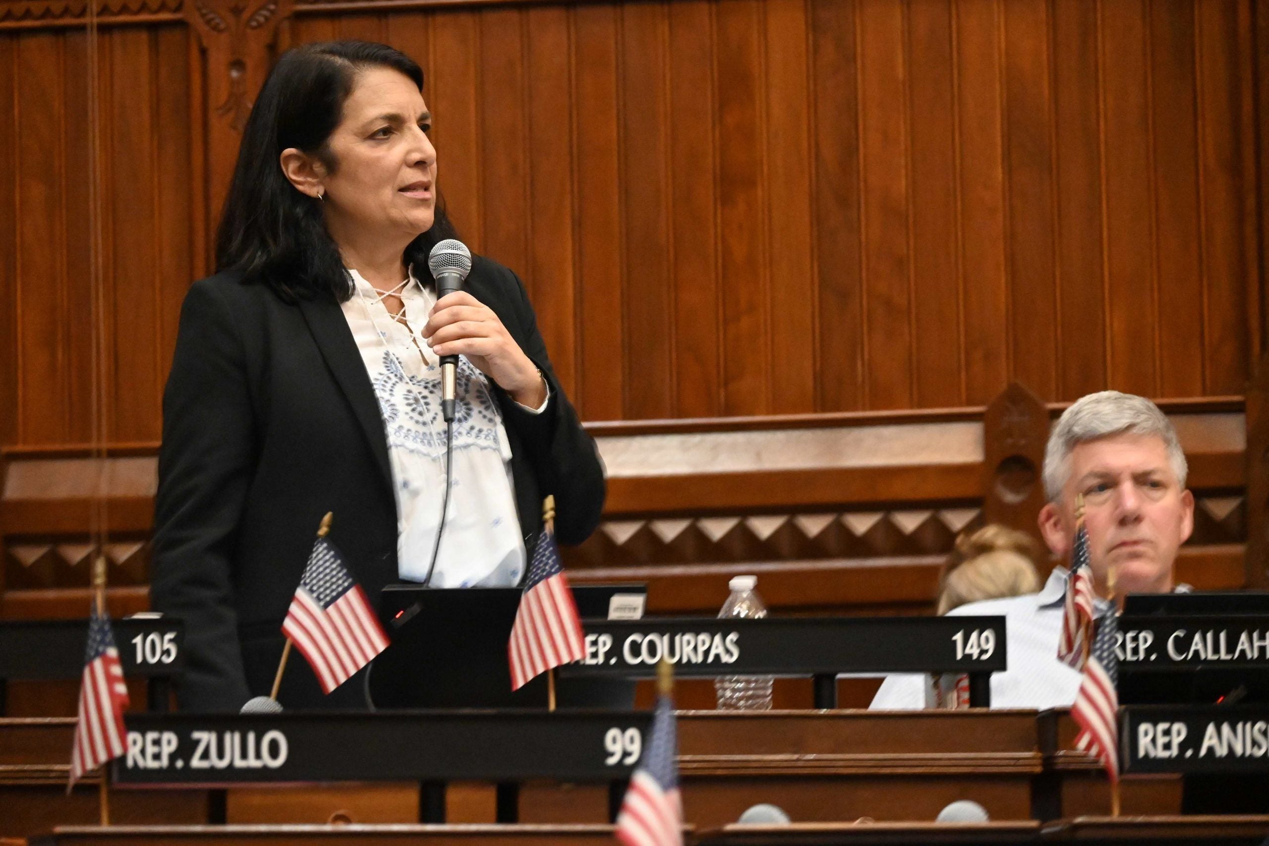 Hartford, CT – In a dramatic turn on the House floor Saturday, freshman State Representative Tina Courpas (R-Greenwich) brought debate on a major Democratic proposal to a halt when she correctly pointed out that the Bill being debated employed a funding mechanism so significant that it required a 3/5 vote under the CT Constitution.