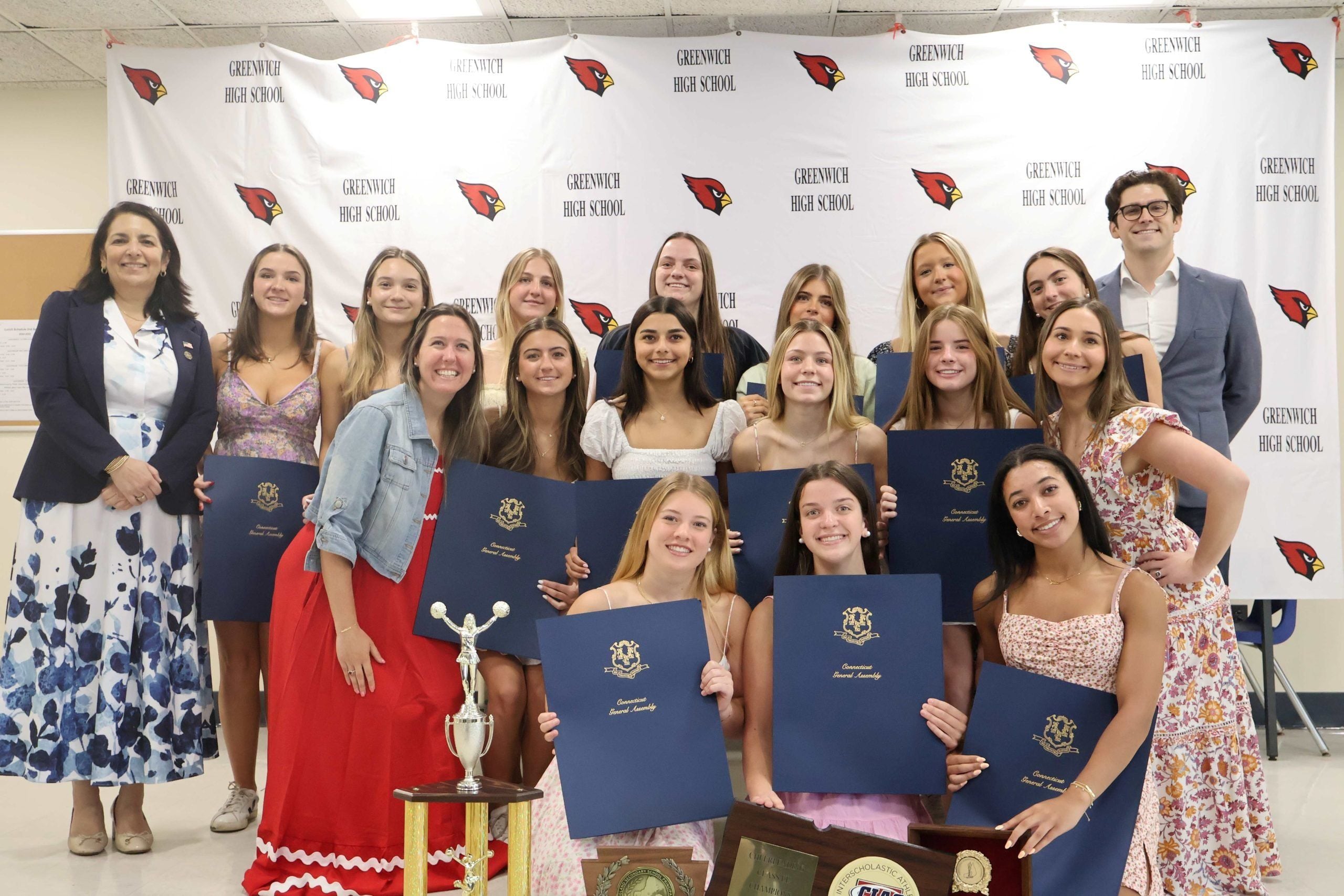 “This Greenwich High School Cheer Team defines excellence,” said Senator Fazio. “Their remarkable achievements reflect not only talent and athleticism but also perseverance and hard work. Congratulations to them on this historic achievement of winning FCIAC, CIAC, and the New England Championships. They have made all of Greenwich proud and set a high standard for the many young athletes that will follow them!”