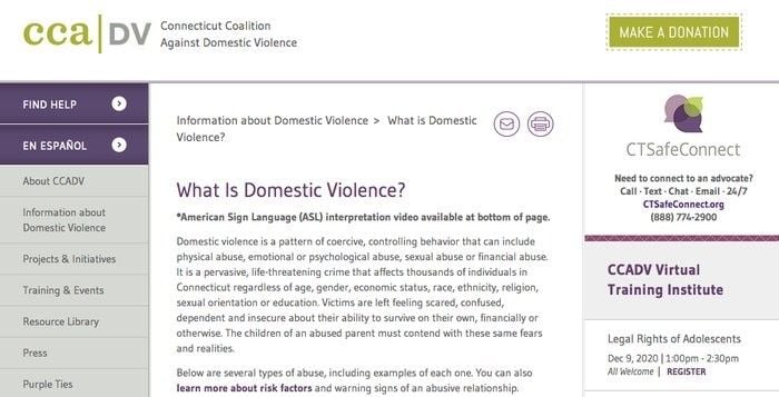 The Connecticut Coalition Against Domestic Violence (CCADV) is the state’s leading voice for victims of domestic violence and those organizations that serve them.