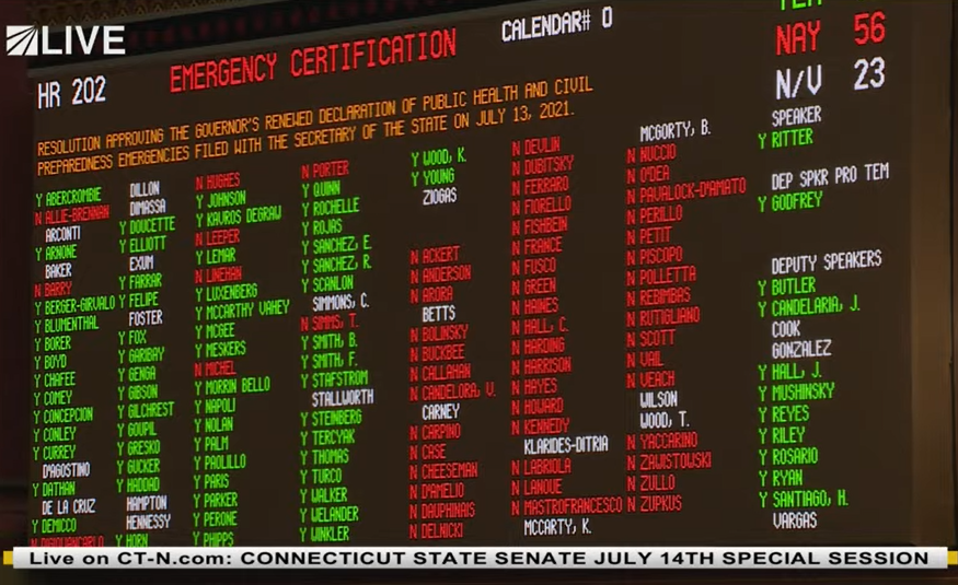 Earlier this afternoon, the House and Senate voted in favor of extending Governor Ned Lamont’s emergency powers through September 30, 2021, (just enough time to extend the mask enforcement for school children) the sixth extension since he originally put his orders in place. The continuation of Governor Lamont’s emergency executive powers passed by a vote of 73-56, with a handful of Democrats saying enough is enough. To me this isn’t just about extending executive orders, it is directly about State Representatives and Senators giving up their duties to the voters that elected them to be their voice.