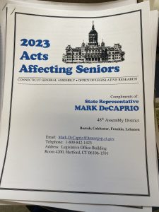 I hope everyone had a wonderful Thanksgiving! As we kick off the holiday season, I was able to catch up with the Franklin Seniors last week and it was a wonderful visit! The Uncas Health District Mobile Health Team was on hand for the seniors, and I took the opportunity to get my blood pressure taken. This is a great resource that the Town of Franklin offers to their seniors, and I was glad to meet these wonderful nurses. I was able to catch up their members on our Acts Affecting Seniors, and we had a vibrant discussion on protecting senior citizens predators and scam artists.