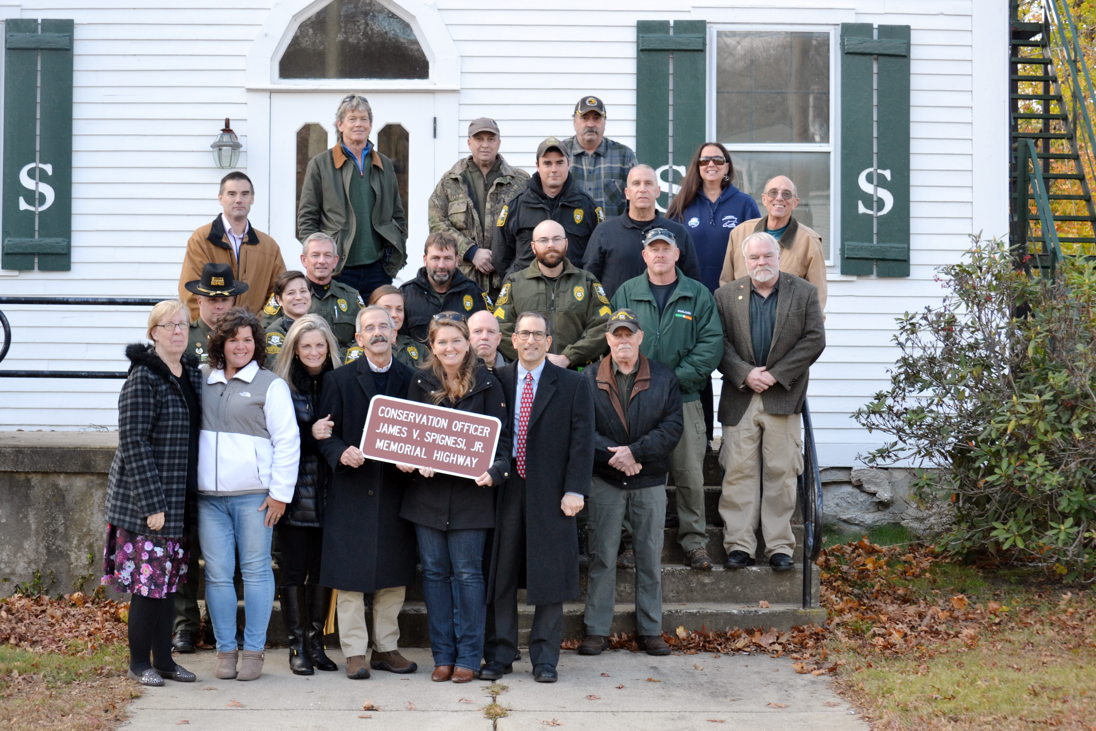 Lawmakers joined by current and former EnCon officers, town officials and family to honor James V. Spignesi, Jr.