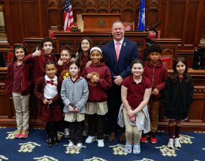 State Rep. Craig Fishbein met with students from Wallingford’s Carver Academy during their annual tour of the state capitol complex.