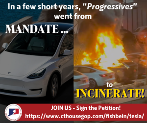 Noting that these attacks are driven by a wildly misguided hatred for the popular electric vehicle company’s CEO, Elon Musk, Rep. Fishbein pointed out that vandalism like smashed or shot-out windows, spray-painted and scratched panels, and arson are not victimless crimes. In some circumstances they may even rise to the level of hate crimes. News reports also indicate some current Tesla owners are reticent to visit dealerships or purchase another Tesla due to the violence.