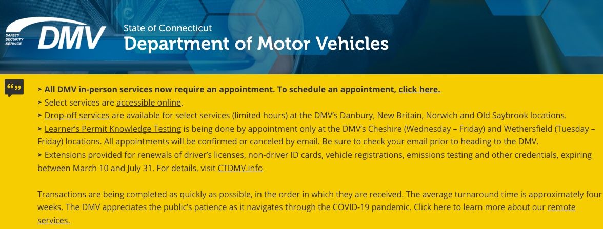 Link to DMV appointments: https://portal.ct.gov/DMV/Offices/Offices/Make-an-Appointment