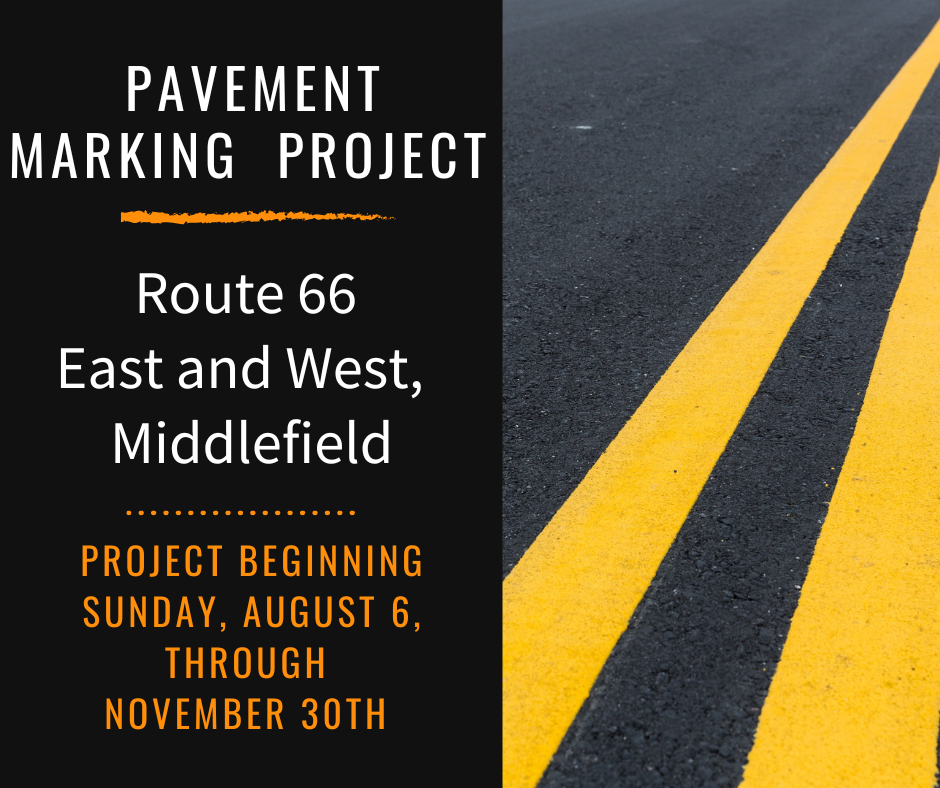 The Connecticut Department of Transportation (CTDOT) announced that a pavement marking project will be performed on certain State Routes, including Middlefield, starting on Sunday, August 6 through November 30, 2023.
