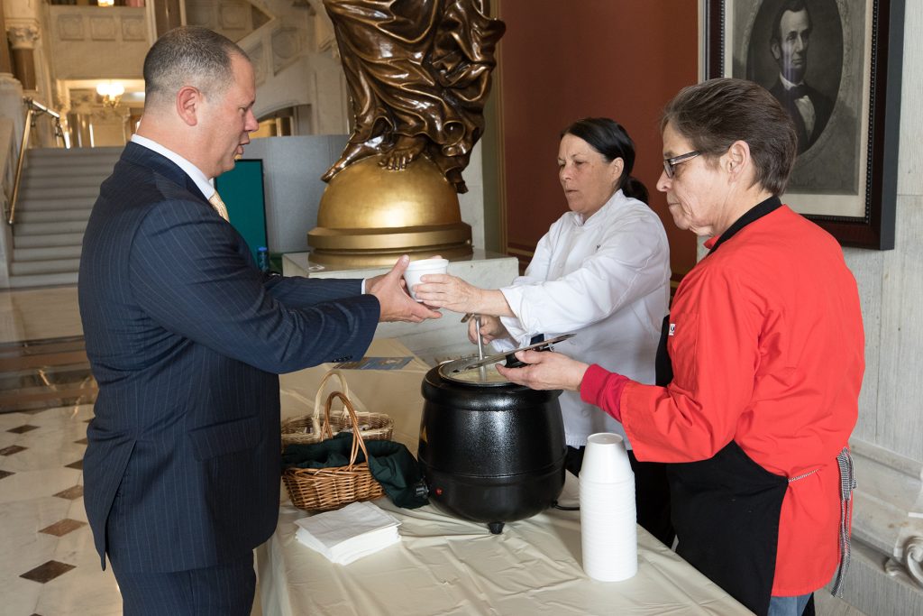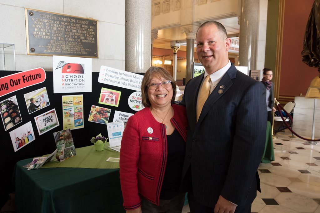 Rep. Craig Fishbein recently spent time touring displays and speaking with representatives of multiple agricultural groups and organizations during the annual Agriculture Day at the state capitol. During the event, Rep. Fishbein ran into longtime friend, and former Wallingford school district employee, Sharlene Wong, of the School Nutrition Association of Connecticut, before trying a cup of New England clam chowder provided by Kane’s Market in Simsbury. Other groups at the event included, Connecticut DEEP, The Agriculture Experiment Station, apple growers, maple syrup producers, dairy farmers, among others.