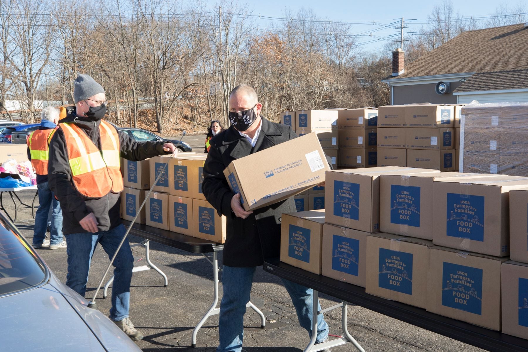 Together, the United Way of Meriden and Wallingford, Master’s Manna, and a small army of intrepid volunteers transformed the large parking lot of Wallingford’s Good News Christian Church into two no-contact drive-through lines to provide this incredible program to the community. In only a few hours we distributed more than 1,000 boxes of food that weighed more than 30,000 pounds during the final handout of the season.