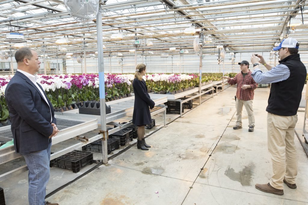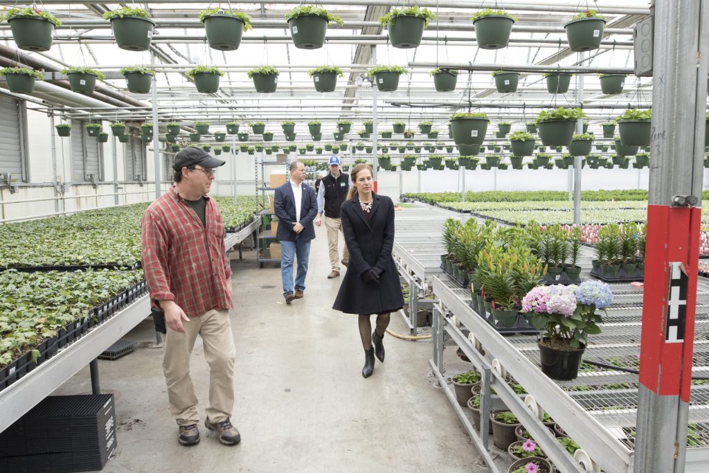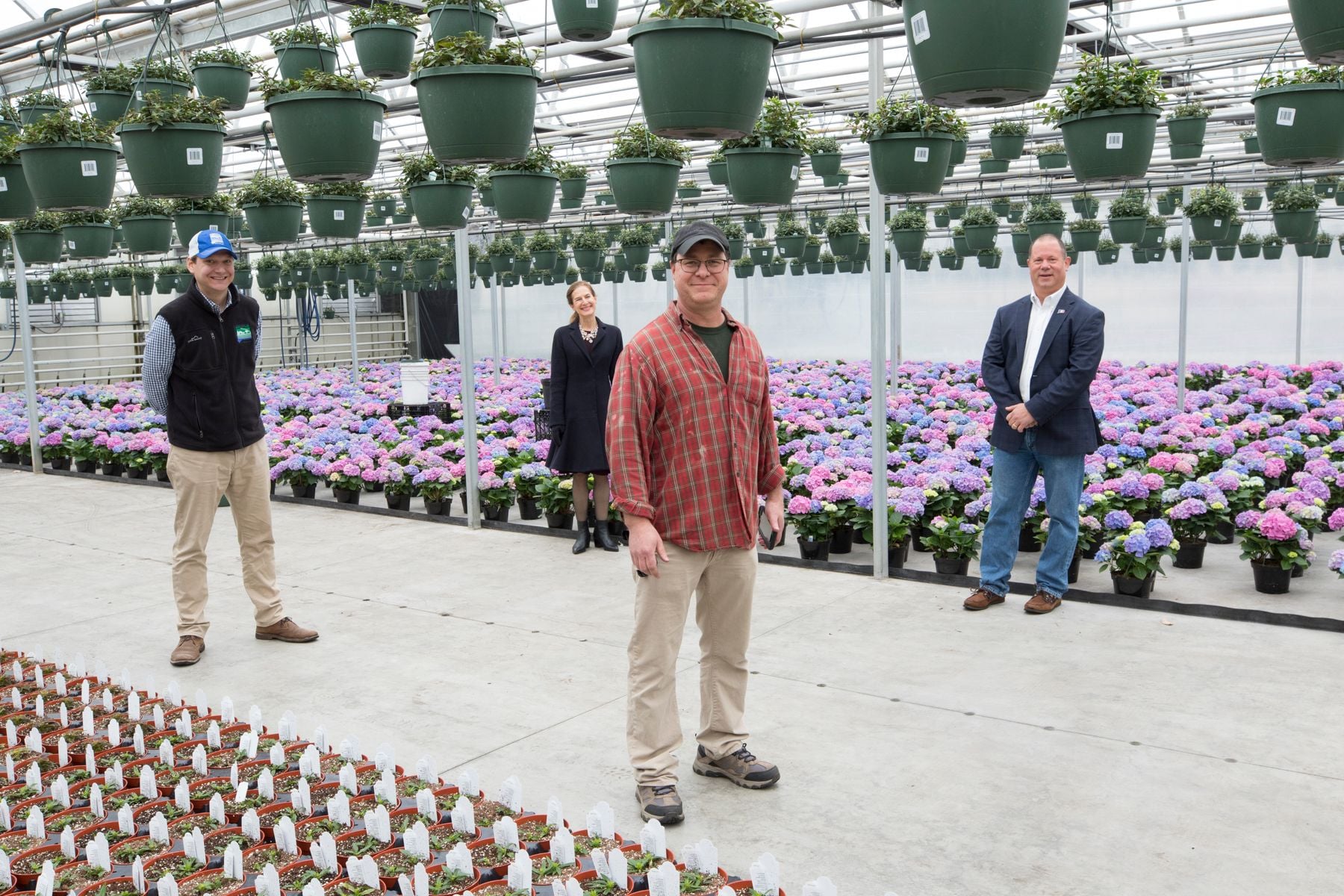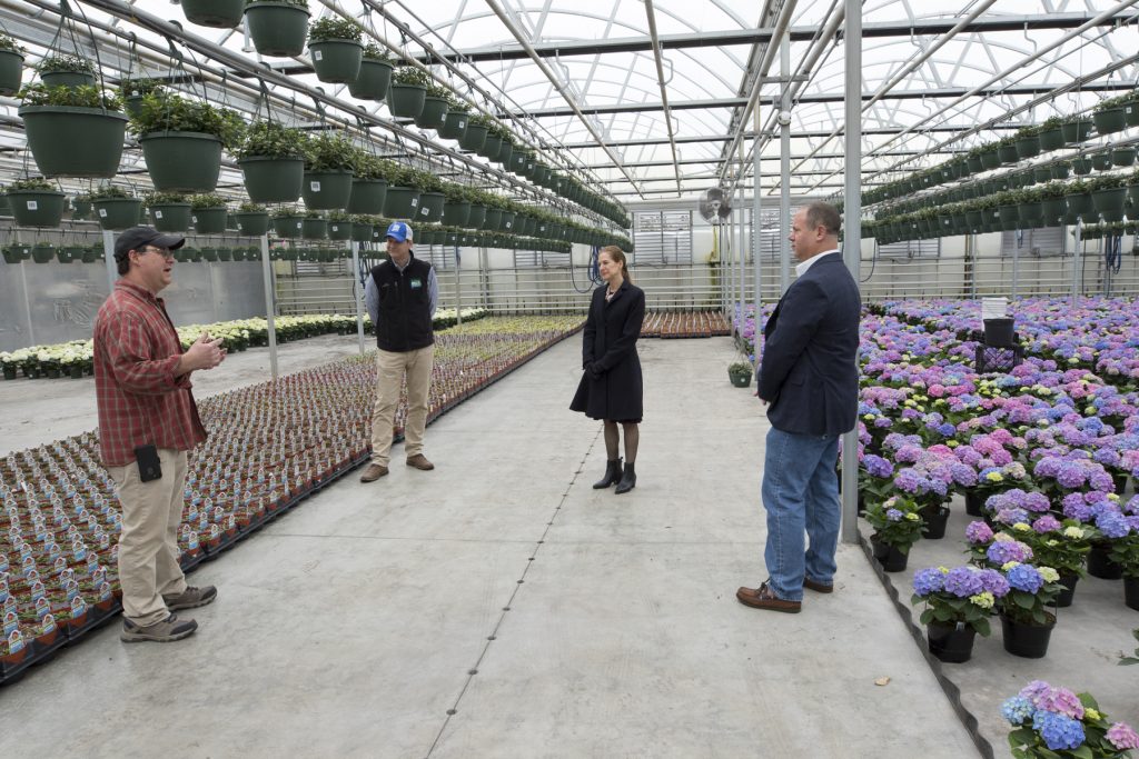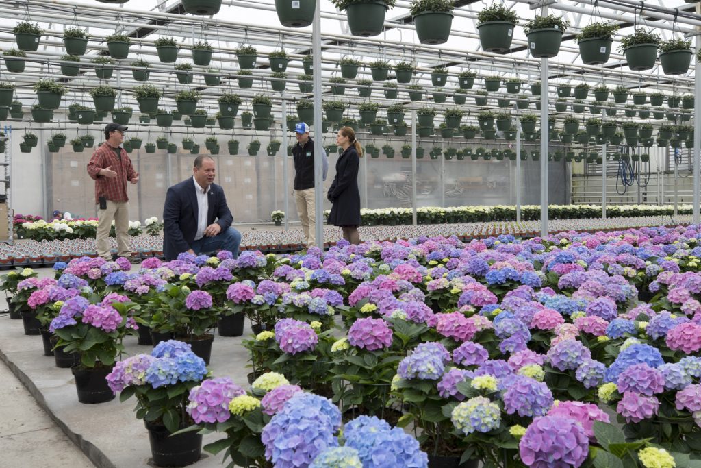 Joe Geremia, who led the small group through the vast greenhouse complex and past rows of hydrangea, lilies and dozens of other varieties, said he’s concerned with balancing the needs of his business while also making sure his staff and customers are safe. Like many farm markets and stands, his staff maintains social distancing and has changed their procedures by offering pre-orders and curbside pickup and payment. They also installed an outdoor register and protective barrier and provide an outdoor shopping area for flowers, he said.