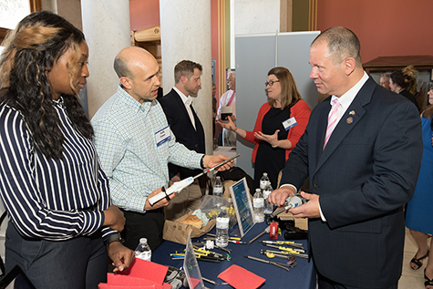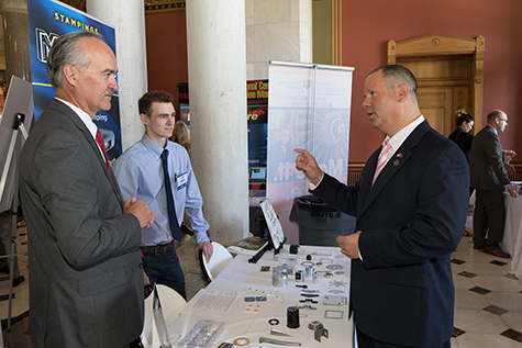 Manufacturers representing a diverse cross section of myriad, local industries were at the Capitol to discuss the importance of their industry to the state, and to provide information and examples of their products to legislators and visitors. Rep. Fishbein was able to talk at length with representatives from Cheshire’s Marion Manufacturing and from medical device company Medtronic before returning to the Hall of the House for a vote.