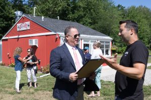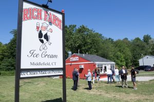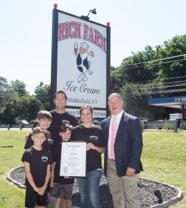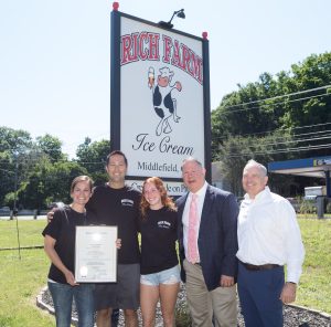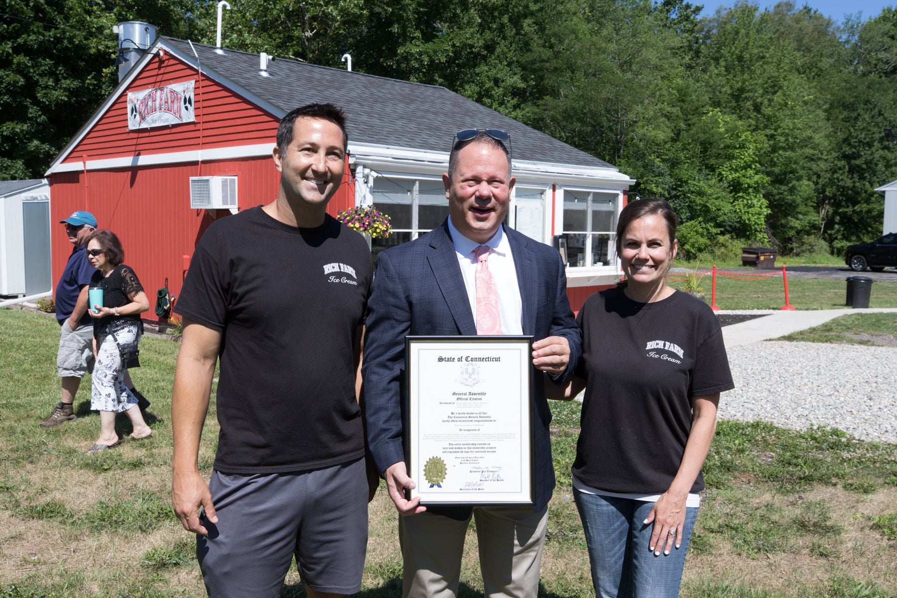 Rich Farm Ice Cream Middlefield, which has been open for just about a year, officially held a ribbon cutting and celebration to mark their entry and commitment to the community. According to owner James Serra, they use an all natural ice cream mix that does not include corn syrup, high fructose corn syrup, growth hormones, or other chemicals. They offer dozens of freshly-made flavors that range from the standard vanilla and chocolate to more wild creations like Razzmanian Devil and Bananas Foster and Cowabunga!