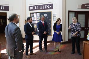 Following a train safety awareness press conference earlier in the day, State Rep. Craig Fishbein joined Lieutenant Governor Bysiewicz, Rep. Mary Mushinsky, Wallingford Mayor Vin Cervoni, State Senator Paul Cicarella, and Board of Education member Caroline Raynis at the Wallingford Senior Center to meet the new Executive Director, Ann Zak, and take an informal tour of the facility.
