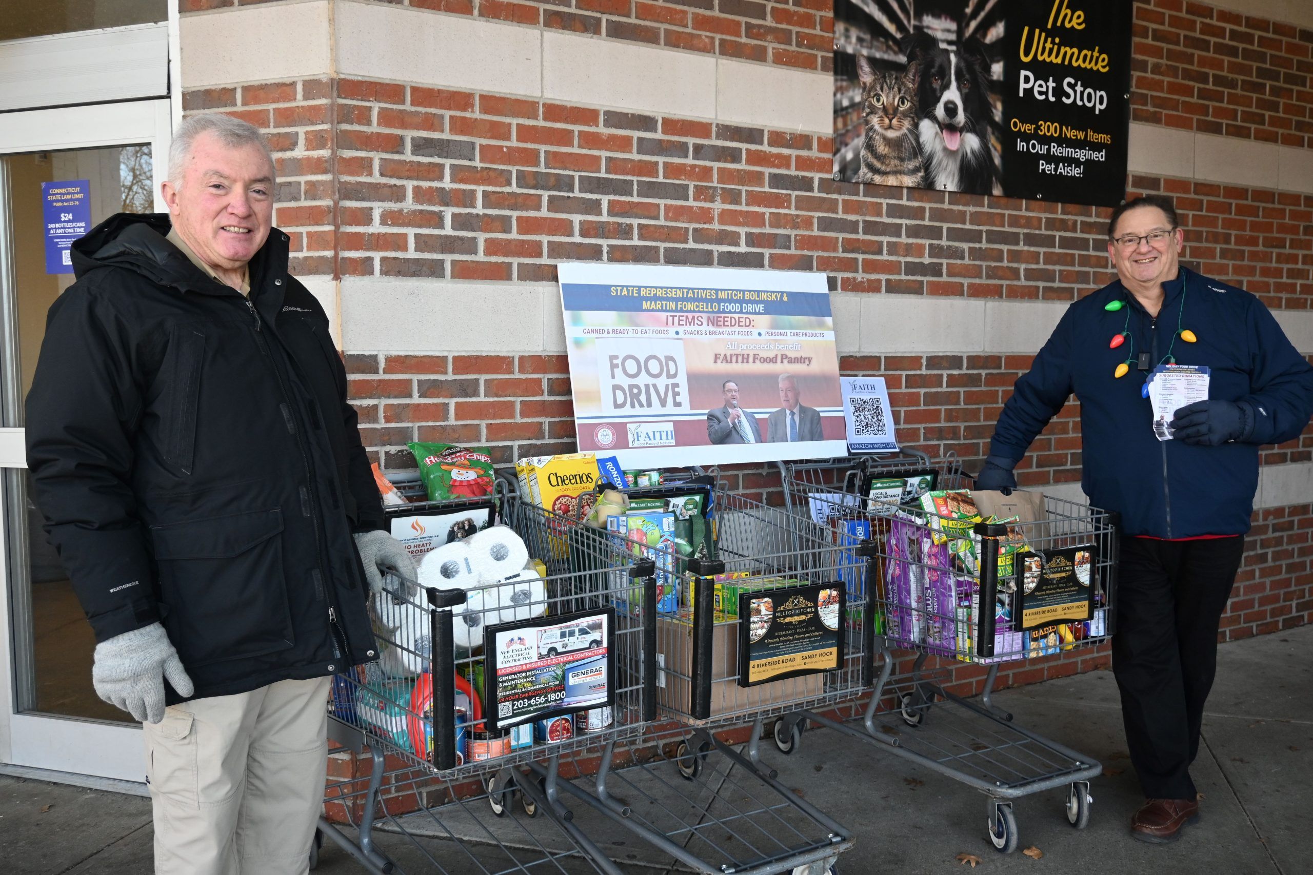 Newtown, CT. – State Representatives Mitch Bolinsky and Martin Foncello hosted a successful food drive on Friday, December 13, 2024, at Big Y World Class Market to benefit FAITH Food Pantry, by helping restock the shelves as we head into the Christmas, Hanukkah, and New Year’s holidays, to make the season a bit less stressful for some local residents in-need. Through the generosity of the community, Bolinsky and Foncello were able to drop off two carloads of donations to the food pantry, located behind Rose of Lima Church.