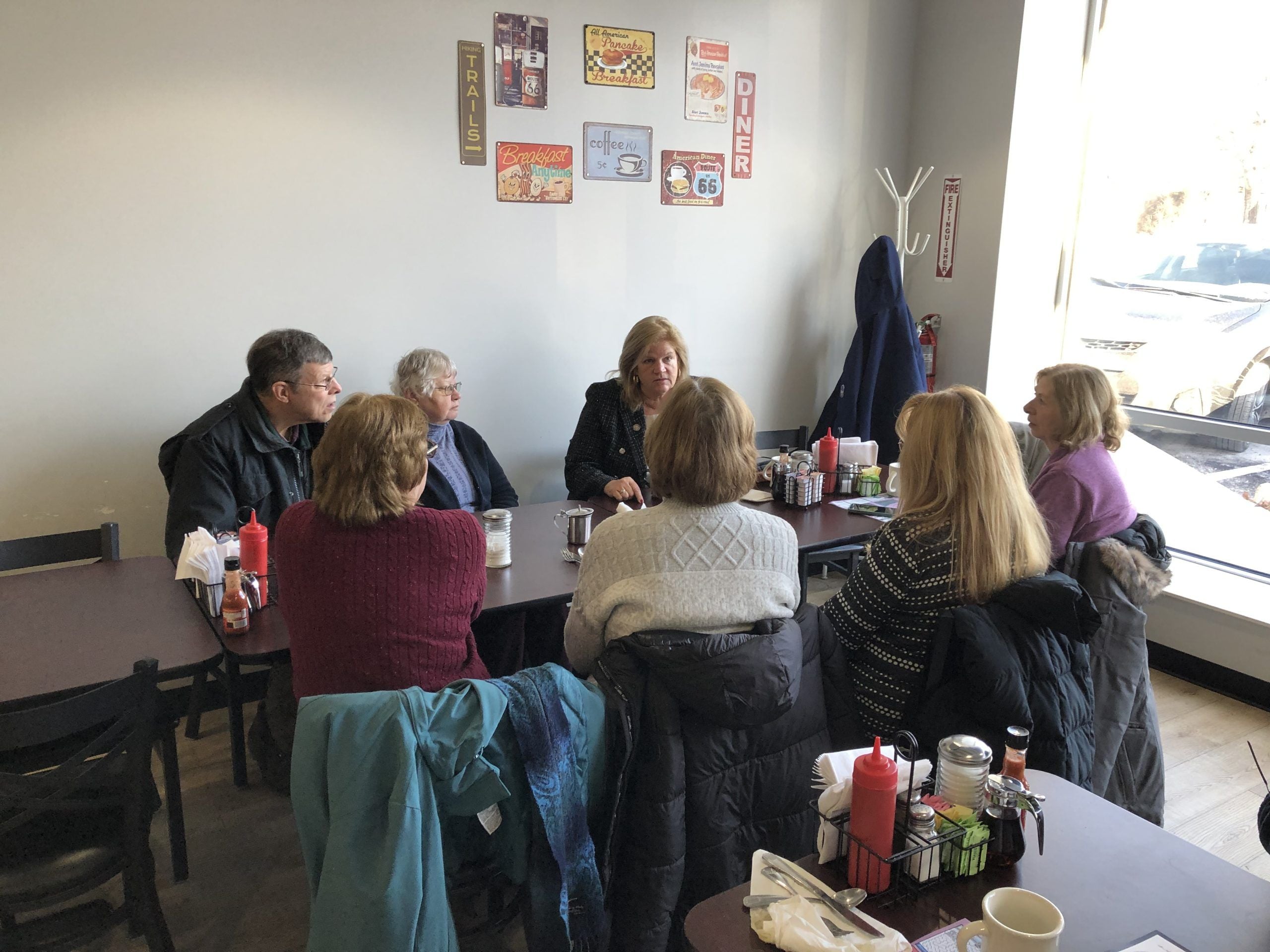 East Hampton—State Representative Irene Haines (R-34) held a coffee shop hour at Two Brothers Cafe, where constituents voiced their concerns over a variety of issues, such as police accountability, DOT road maintenance, action against street takeovers, electric rates, and housing. Rep. Haines listened to the concerns of her constituents and went over the process of how to track a bill.