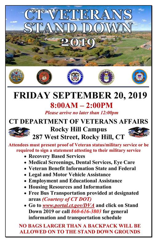 CT Veterans Stand Down (Sept 20 – 8am to 2pm)