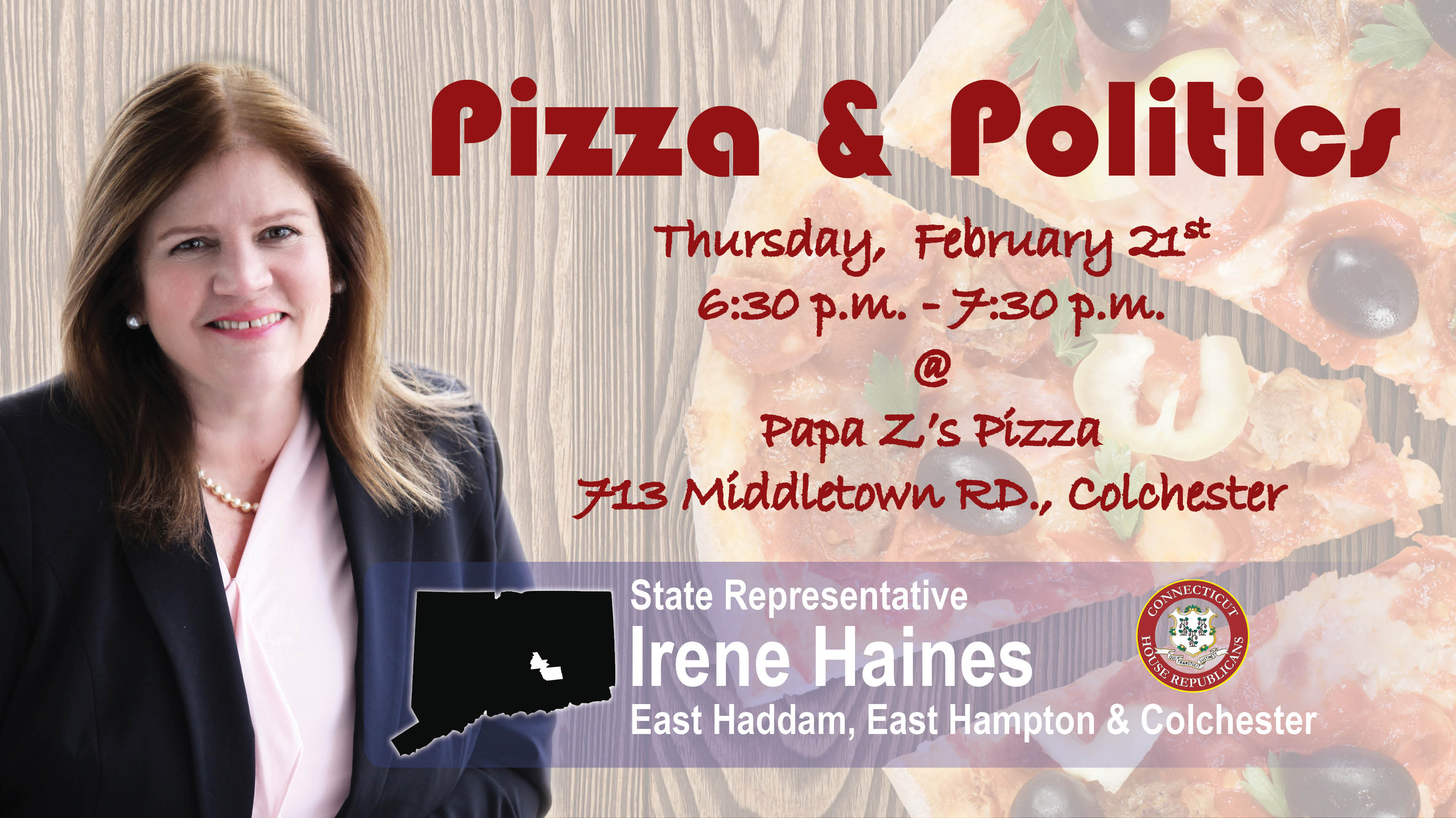 As your voice in Hartford, I want to hear from you! Please join me for a Coffee Hour in East Haddam and Pizza & Politics in Colchester on February 21st. Come and share your thoughts, ideas, questions and concerns about issues facing the legislature in 2019.