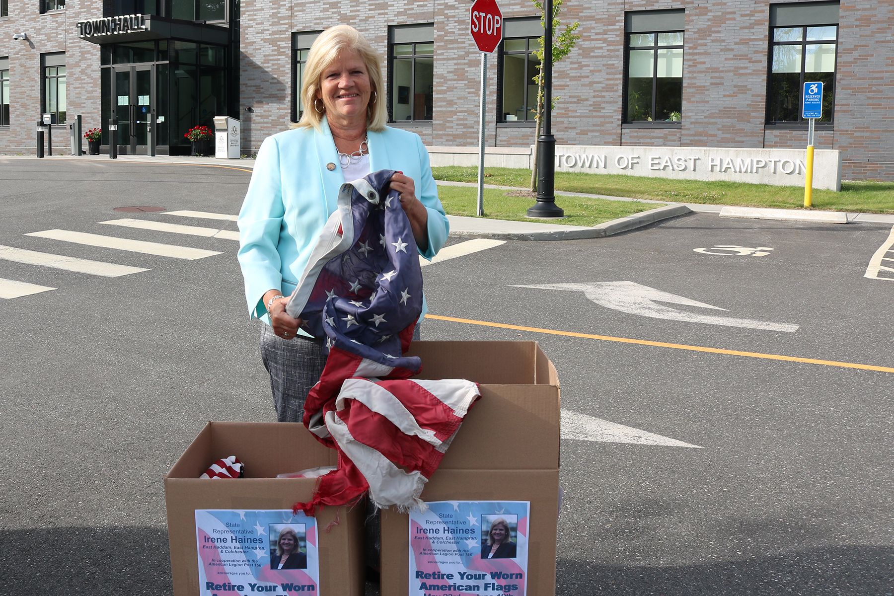 EAST HAMPTON – State Representative Irene Haines (R-34) sponsored a worn, tattered, torn, or otherwise unserviceable American Flag collection between May 23rd and June 10th. Collection boxes were placed at the East Hampton and East Haddam Town Halls for residents to drop off their flags.