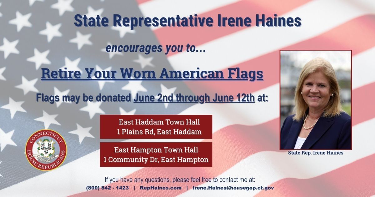 We have locations for you to drop off your flags in East Haddam and East Hampton, between June 2nd and June 12th. Also in Salem, from June 6th through June 12th, so you have plenty of time to get to your nearest location. The locations are listed on the graphics and you can contact me with any questions.
