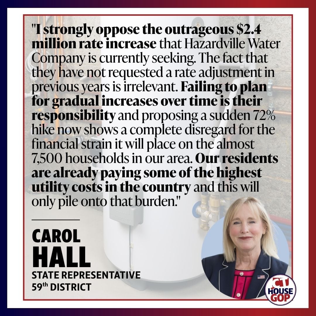 - Rep. Hall Responds to Outrageous Water Increase from Hazardville Water Co.