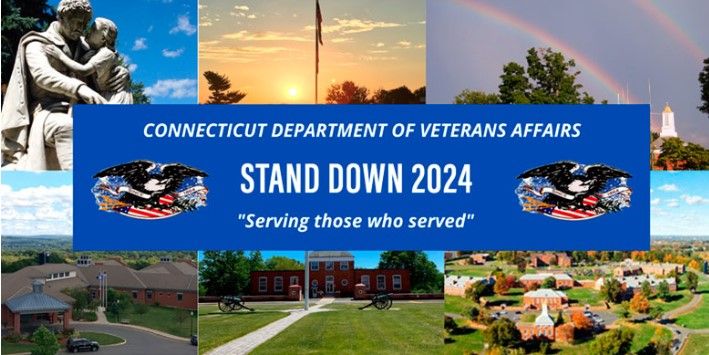 The Connecticut Department of Veterans Affairs will be hosting STAND DOWN 2024 on Friday, September 20, from 9:00 a.m. – 2:00 p.m., to provide access to a range of programs and services offered by state and federal agencies, Veterans organizations, and community-based non-profits at these regional sites across the State.