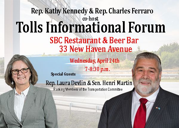 MILFORD–State Representatives Charles Ferraro (R-117) and Kathy Kennedy (R-119) in conjunction with State Senator Henri Martin (R-31) and State Representative Laura Devlin (R-134), House and Senate Ranking Members of the legislative Transportation Committee, are inviting the public to attend an informational forum on tolls.