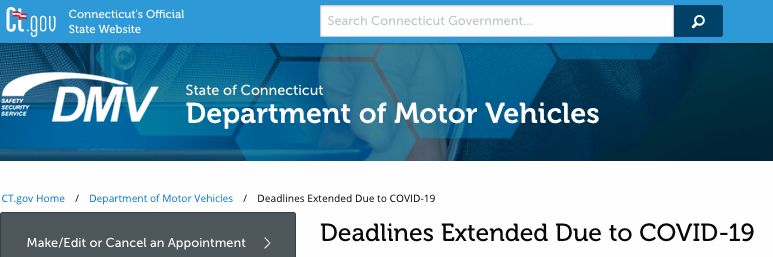 I just wanted you to know that, due to the continued impact of COVID-19, the Connecticut Department of Motor Vehicles has extended deadlines for Connecticut residents with expiring credentials.