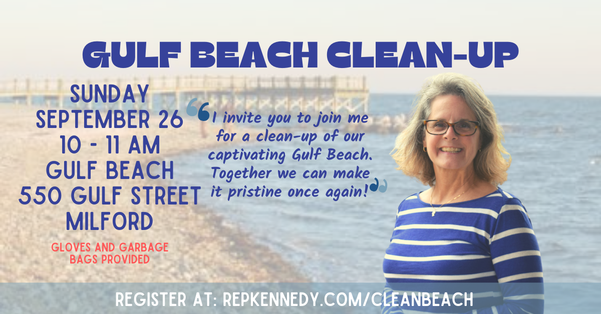 MILFORD- With the end of summer almost upon us, State Rep. Kathy Kennedy (R-43) is hosting a Beach Clean-up on September 26 at Gulf Beach.