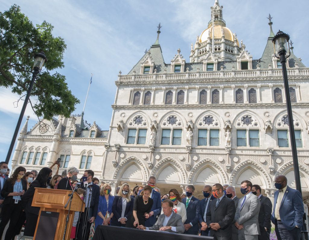 On the first day of Pride Month – June 1, 2021 – Rep. Nicole Klarides-Ditria joined her colleagues from both sides of the aisle to witness Governor Lamont’s ceremonial bill signing of House bill 6321 – An Act Concerning Adoption and Implementation of the Connecticut Parentage Act.