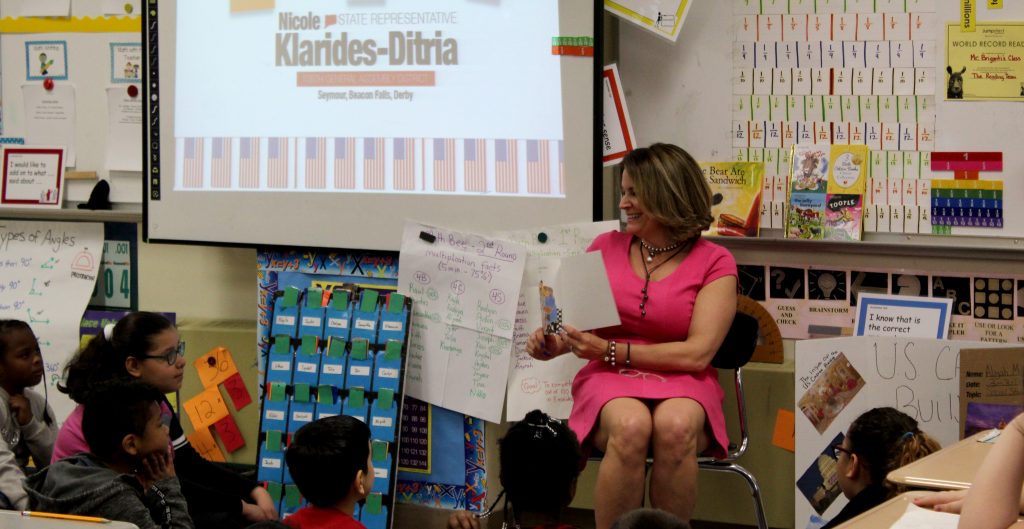 Rep. Klarides-Ditria read to Mr. Biganti’s fourth-grade class at Irving Elementary School in Derby