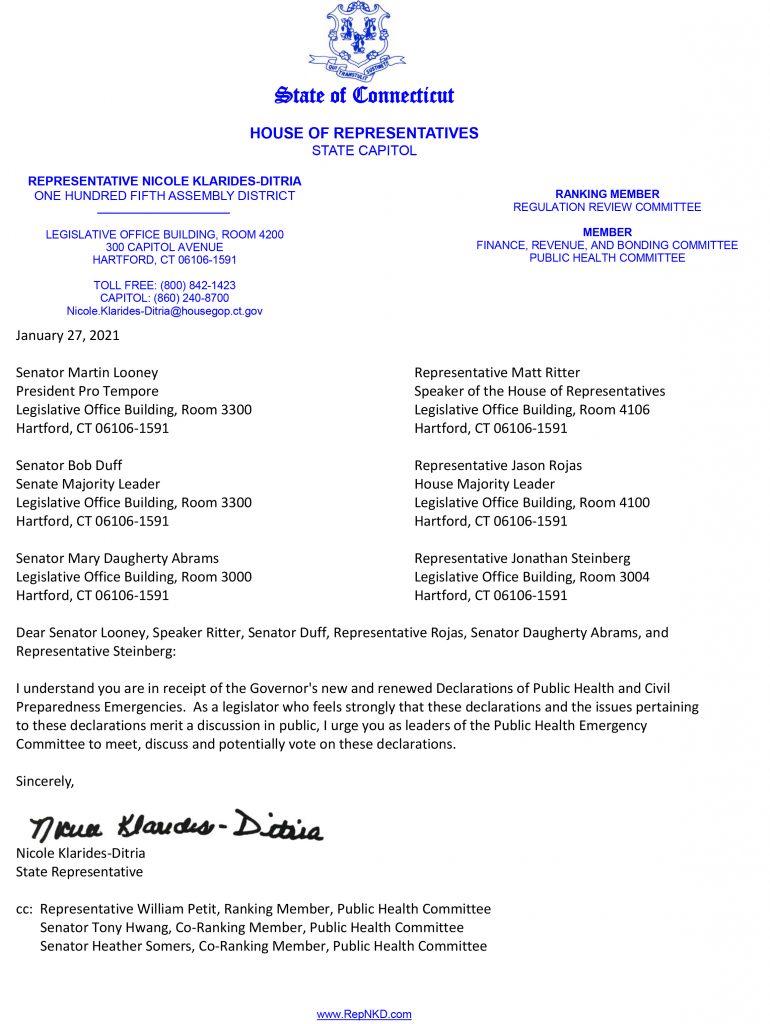 Today, I joined my colleagues and asked the members of the Public Health Emergency Committee to review and vote on the governor’s extension of his executive powers until April 20.