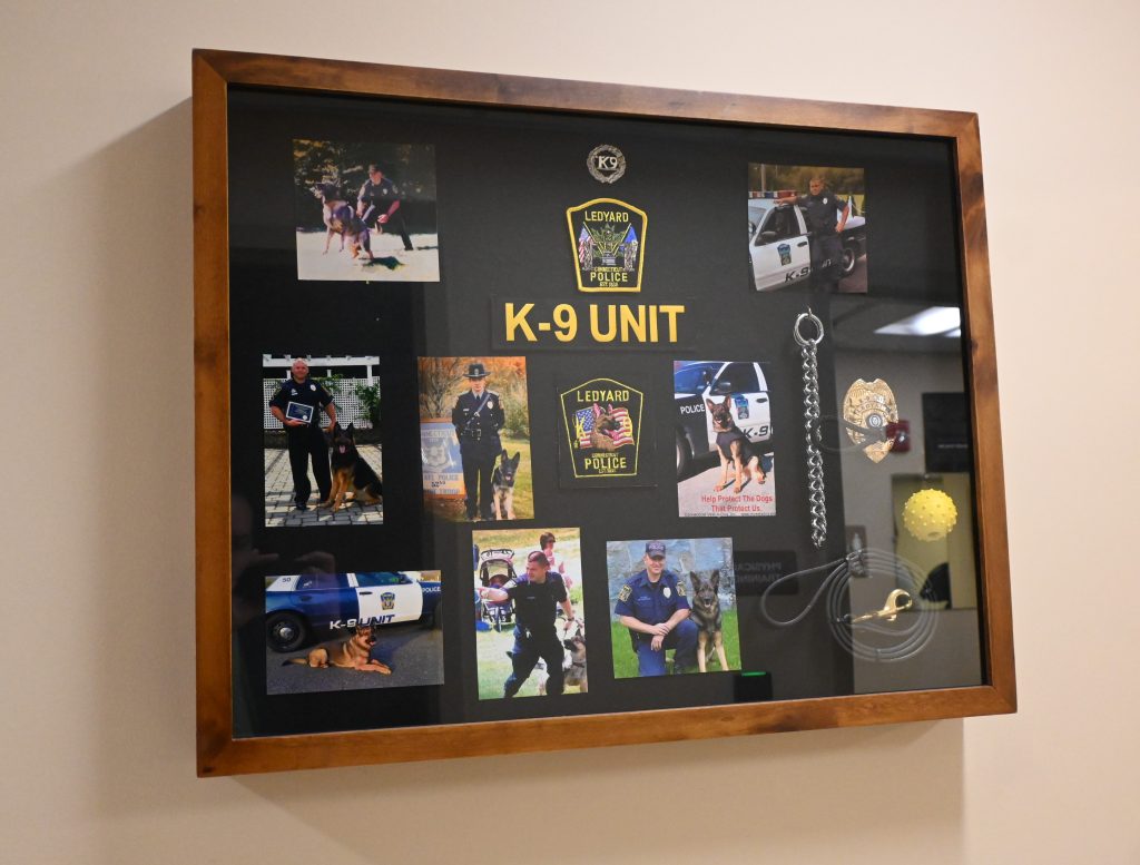 From there, I met Ledyard Police Chief John Rich who was fantastic to talk to. He and Officer Gleason gave me a rundown of the roster of Ledyard Police Department that has a total of 24 officers, and two animal control officers. There is also one Drug Recognition Expert (DRE) on the roster at the police department out of a total of only 70 in our entire state! I learned that the training to become a DRE is very intense and not for everyone. With such a small number of these experts across Connecticut, they do need to respond outside of Ledyard’s 40-square miles to offer mutual aide to surrounding police departments.